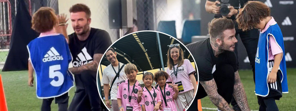 "ได้ใช้แต้มบุญ แต้มวาสนา แล้วนะพวกเรา โดยเฉพาะเอเดนคือแต้มบุญบาทามากก @davidbeckham ผูกเชือกรองเท้าให้ ป้าดดดดดดดดด คือหล่อจริงพี่ ๆ เอ้ยยย #3ยอดกุมาร #guyharufamily"