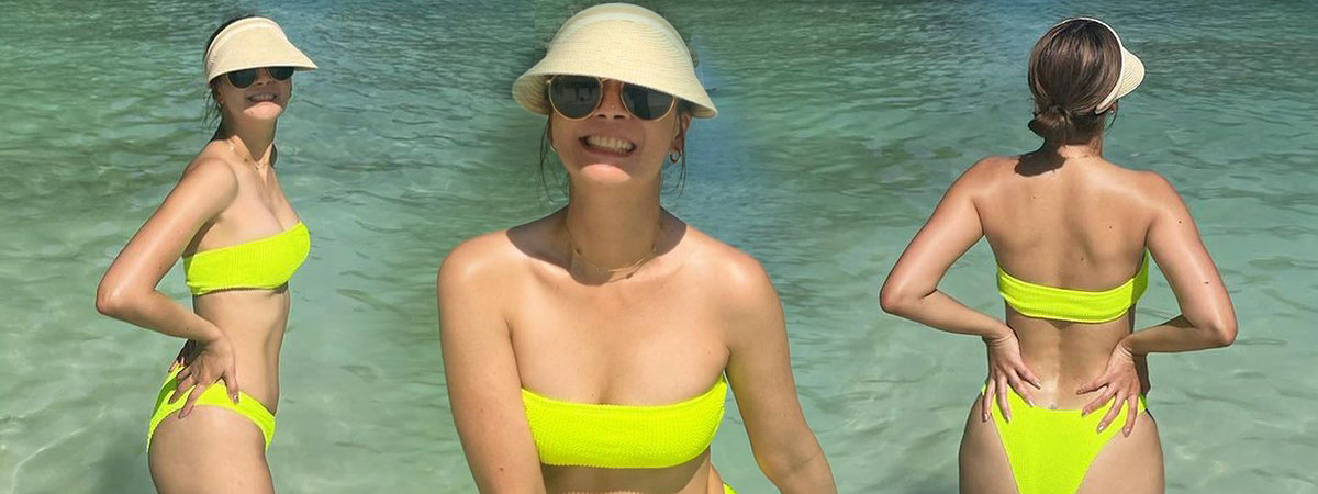 ส่องความสวยเซ็กซี่ เอมี่ กลิ่นประทุม อวดอึ๋มเบา ๆ ในชุดว่ายน้ำทูพีซสีเขียวสะท้อนแสง ทำทะเลเกาะพีพีฮอตฉ่า