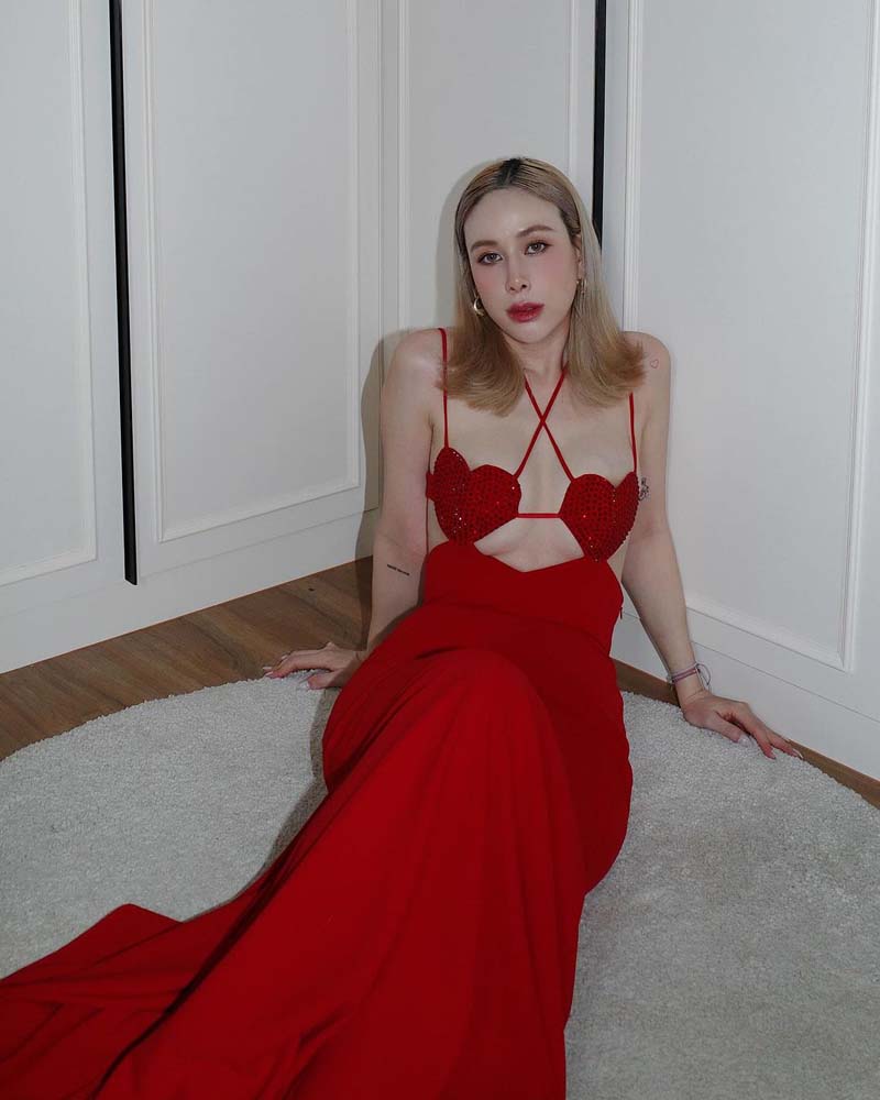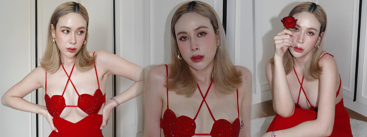 ฝ้าย เวฬุรีย์ อดีตพิธีกรรายการดังและมิสยูนิเวิร์สไทยแลนด์ 2014 ต้องรับวันวาเลนไทน์แบบเดือด ๆ ด้วยชุดเดรสสีแดงสุดเซ็กซี่ ที่ปิดอกด้วยหัวใจสีแดงดวงโต ๆ