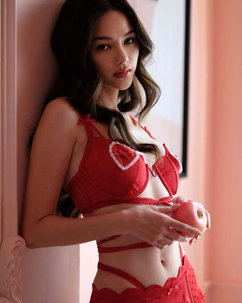 ควันหลงวาเลนไทน์ กวาง เดอะเฟซ สลัดผ้า นุ่งบิกินี่สีแดงแรงฤทธิ์ ถ่ายแบบแฟชั่นรับวาเลนไทน์แบบเซ็กซี่สตาร์ ที่ปิดอกด้วยหัวใจสีแดงดวงโต ๆ
