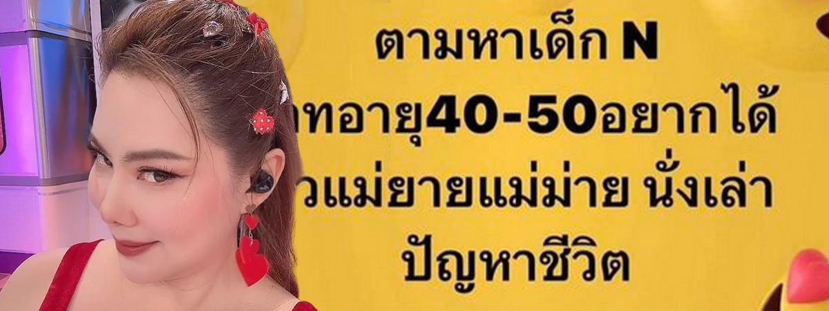 โดยโพสต์ดังกล่าวได้ระบุว่า "ตามหาเด็ก N เรอายุ 40-50 อยากได้ฟีลแม่ยายแม่ม่าย นั่งเล่าปัญหาชีวิต"