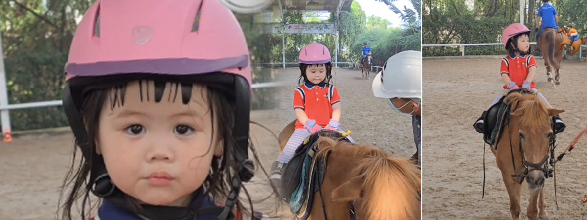 อย่างล่าสุด (17 กุมภาพันธ์ 2567) แม่ชม ก็มีคลิปความน่ารักของ เจ๊เกล มาฝากให้แฟน ๆ ได้ติดตามชมกันอีกแล้ว หลังพาลูก ๆ ไปเรียนขี่ม้า ซึ่ง เจ๊เกล ในวัยเกือบ 2 ขวบ ก็โชว์สกิลขี่ม้าได้ไม่แพ้พี่ ๆ เลย เพราะบุคลิกดี ทรงตัวดีมาก นั่งหลังตรงตลอด และยังมีความมั่นใจในตอนที่ขี่ม้า ไม่กลัวม้าเลย แถมยังมีชอตก้มไปคุยกับม้าตามที่ครูฝึกสอนด้วย