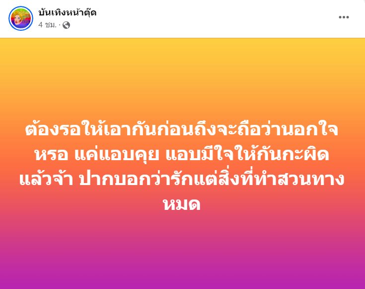 - ต้องรอให้เอากันก่อนถึงจะถือว่านอกใจหรอ แค่แอบคุย แอบมีใจให้กันกะผิดแล้วจ้า ปากบอกว่ารักแต่สิ่งที่ทำสวนทางหมด
