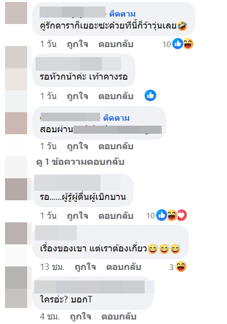 งานนี้ทำเอาชาวเน็ตเข้ามาคอมเมนต์คาดเดากันเพียบ ว่าคู่รักดาราที่มีแววจะเลิกกัน คือคู่ไหนกันแน่ เพราะดูเหมือนจะมีแววกันหลายคู่ ส่วนจะตรงตามที่ชาวเน็ตคิดหรือไม่ ต้องรอติดตามกันต่อไป
