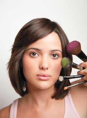สาวแก้มตอบ ที่จริงบางคนก็ชอบแก้มตอบๆ นะ เพราะหน้าจะได้ไม่ดูบานเป็นซาลาเปา แต่แก้มตอบๆ ก็อาจทำให้คุณดูโทรมเหมือนคนอดนอนเหมือนกัน วิธีอำพรางแก้มทำได้ง่ายมาก โดยการปัดแก้มด้วยบลัชออนสีชมพู ชมพูอมส้ม หรือแดงเชอร์รี่ก็ได้ ปัดตรงส่วนที่นูนที่สุดของแก้มให้เป็นวงกลม จากนั้นเวลาที่เขียนอายแชโดว์ก็ต้องไม่เน้นที่เส้นขอบตามากนัก เพราะจะยิ่งไปเน้นความคมสันของหน้าทำให้รูปหน้าดูเป็นเหลี่ยม และห้ามแรเงาตรงกรอบของขอบหน้าเด็ดขาด เพราะหน้าคุณจะยิ่งดูตอบขึ้นไปใหญ่เลย