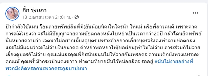 ภาพจาก เฟซบุ๊ก กิ๊ก รุ่งนภา