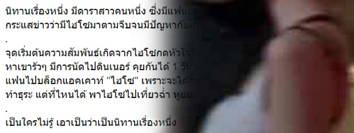 นอกจากนี้ทางเพจยังได้ให้เบาะแสเพิ่มเติมในคอมเมนต์อีกด้วย อาทิ ปัจจุบันนิทานเรื่องนี้ ฝ่ายแฟนตัวจริงยังไม่รู้ รู้แค่ว่า ไฮโซ ช. มาวุ่นวายกับแฟนตัวเองแค่นั้น, ไปออกข่าวว่าไฮโซมาตามจีบ จนทำให้มีปัญหากับแฟน ไฮโซ งงแล้วหนึ่ง, นิทานเรื่องนี้ อยากบอกว่า นักแสดงสาวไม่ดัง แต่มีดีกรี