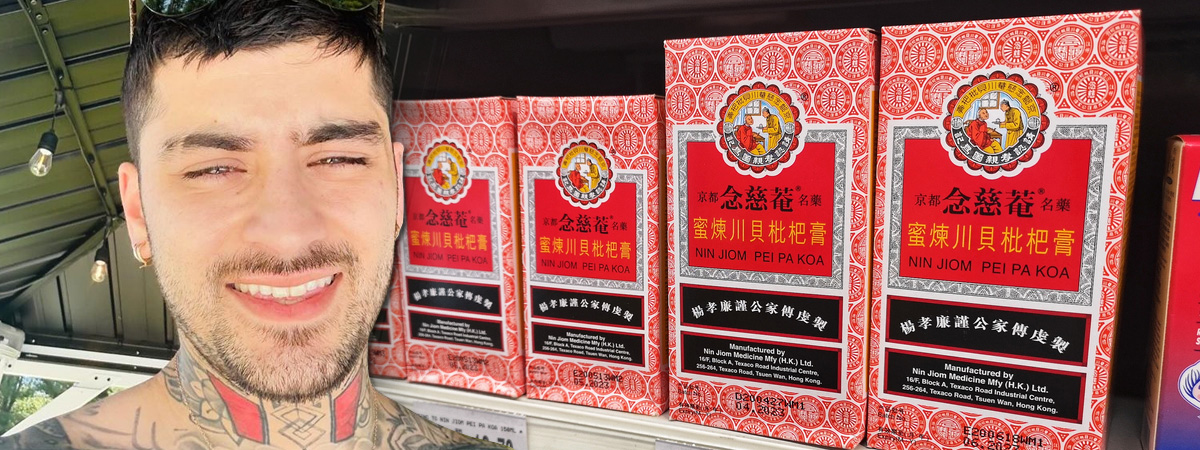 โดยที่ในกระเป๋าหรู Fendi ของ Zayn นั้น มีทั้งน้ำหอม, เกม, ลูกอม และหนังสือ แต่สิ่งหนึ่งที่สะดุดตามาก ๆ คือ เขายังพกขวดยาแก้ไอ ชวนป๋วยปี่แปกอ ตราลูกกตัญญู ยาน้ำแก้ไอผสมสมุนไพรชื่อดัง ไว้ในกระเป๋าอีกด้วย โดยที่ Zayn บอกว่า “ยานี้คือน้ำผึ้งจากจีนที่ช่วยเส้นเสียงได้ดีโคตร ๆ ผมเรียกมันว่า ยาวิเศษ ผมพกขวดนี้ไปด้วยทุกที่ โดยเฉพาะตอนเวลาที่ต้องร้องเพลง“ ซึ่ง Zayn บอกว่า เวลาที่เขากินนั้น เขาจะผสมกับน้ำเข้าไปด้วยนิดหน่อย