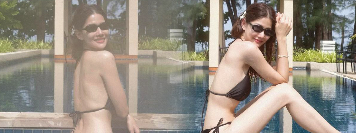 ส่องหุ่น น้ำหวาน กรรณาภรณ์ ในชุดว่ายน้ำบิกินี่สีดำ ก่อนโพสท่าถ่ายรูปรัว ๆ ก่อนลงเล่นน้ำ แต่ละชอต... ภาพอาจจะเบลอไม่คมชัด แต่ความแซ่บชัดเว่อร์ !!
