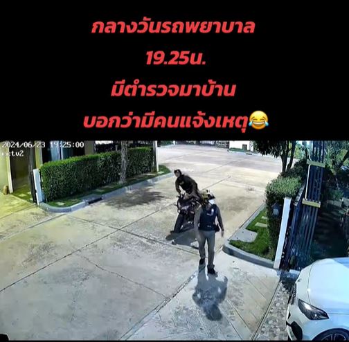 - เวลา 19.25 น. คราวนี้มีตำรวจมาถึงหน้าบ้าน บอกว่ามีคนแจ้งเหตุ
