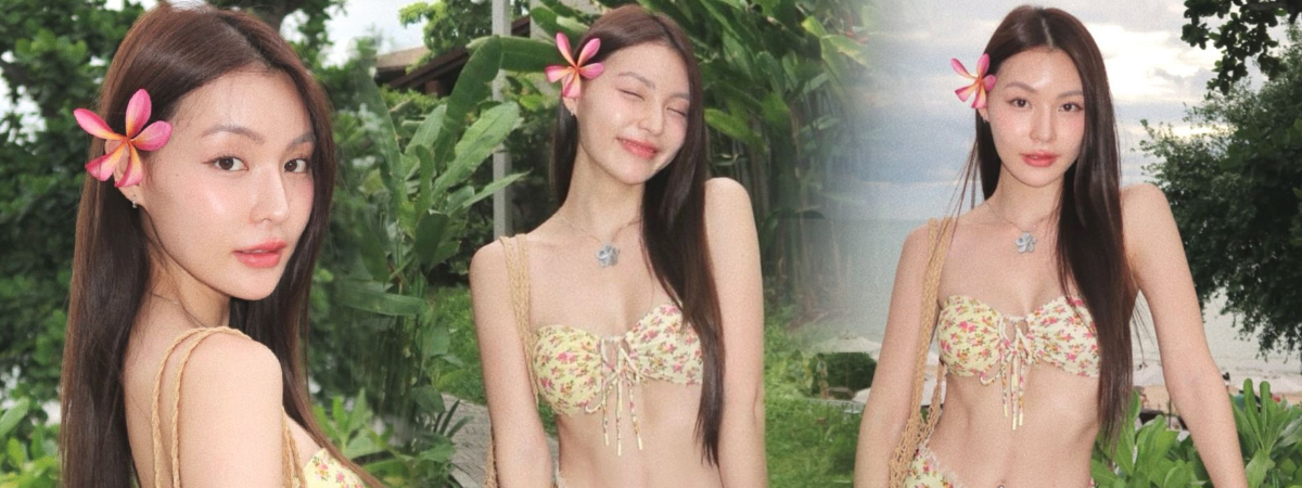 กระปุก พลอยนิรา ส่งภาพเซ็กซี่เบา ๆ ในชุดว่ายน้ำทูพีซสีเหลืองลายดอก ที่แอบเผยความอึ๋มเบา ๆ ขณะรับลมทะเลอยู่ริมชายหาดพัทยา