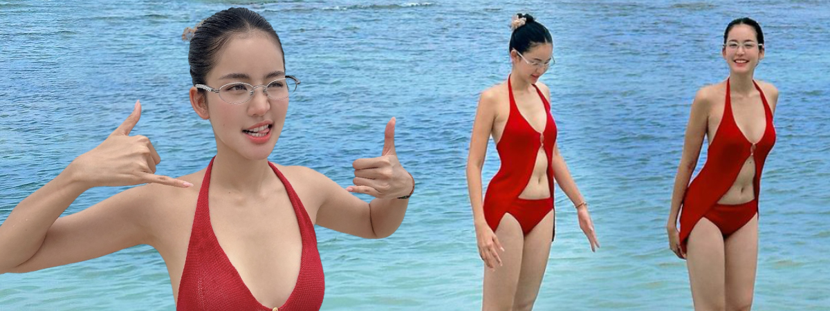 ส่องความสวยเซ็กซี่ โบว์ เมลดา สลัดลุคนางเอกหวาน ๆ เป็นสาวแว่นสุดเซ็กซี่ ในชุดว่ายน้ำสีแดงแรงฤทธิ์ เผยผิวขาวออร่าสะเทือนหาด