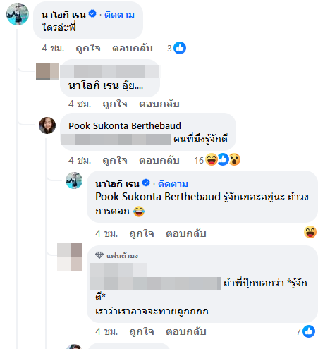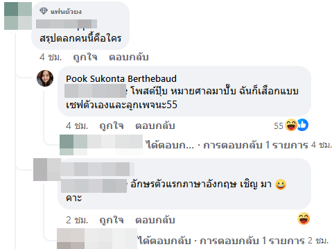 ขณะที่ นัส จุฑารัตน์ อดีตภรรยา โชค รถแห่ ก็เข้ามาคอมเมนต์ถามด้วยว่าเป็นใคร ซึ่ง ปุ๊ก สรปุก ก็ได้ตอบกลับไปว่า "คนที่มึงรู้จักดี" เล่นเอาชาวเน็ตยิ่งมุงกันแซ่ด