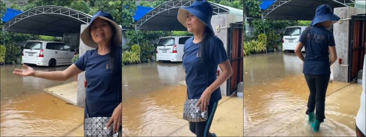 แต่จากนั้นไม่นาน แม่แก้ว ก็ได้ออกมาเคลื่อนไหว โพสต์อีกคลิปหลังกลับจากตลาดก็พบว่า น้ำได้เริ่มท่วมเข้าไปยังบริเวณหน้าบ้านแล้ว พร้อมระบุว่า "ไปตลาดเพียงครึ่งชั่วโมงพอกลับมาถึงบ้าน… เจองานช้างเลยครับพ่อ น้ำท่วมบ้านแล้วครับ" พร้อมแท็กหาลูกชาย ณเดชน์ คูกิมิยะ