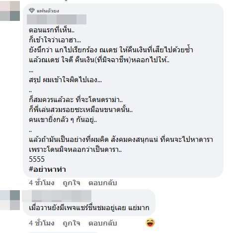 แต่ต่อมาก็เกิดดราม่าขึ้น เมื่อชาวเน็ตอีกด้านไม่ตลกด้วย มองว่าเป็นคอนเทนต์ที่มิจฉาชีพอาจนำไปลอกเลียนแบบได้ เพราะถ้ามิจฉาชีพมันเอาวิธีนี้ไปใช้ อาจลุกลามไปถึงคนไม่รู้จริง ๆ แล้วตกเป็นเหยื่อมิจฉาชีพได้ง่าย ๆ เพราะอยากเจอดารา บางคนบอกไม่ขำเลย คนเฒ่าคนแก่โดนหลอกเยอะมากกับวิธีนี้ เข้าใจว่าขำ ๆ แต่มันสมจริงมาก เขายิ่งรณรงค์ให้ผู้เฒ่าผู้แก่รู้ทันมิจฉาชีพกันอยู่