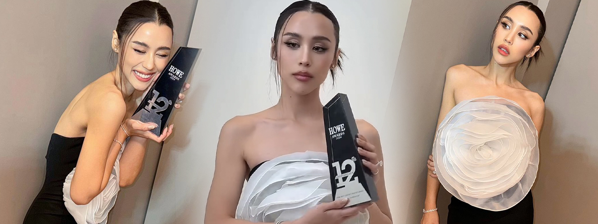 ส่องแฟชั่น ลิลลี่ ภัณฑิลา ว่าที่เจ้าสาว ออร่าเปล่งประกายในชุดเดรสกระโปรงยาวสีดำเข้ารูปติดดอกกุหลาบขาวช่อใหญ่กลางอก ก่อนขึ้นรับรางวัล