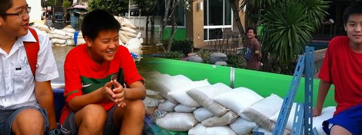 ล่าสุด บนโลกออนไลน์ก็ฮือฮาสุด ๆ กับภาพของหนุ่มน้อยคนหนึ่ง ที่ในตอนนั้นบ้านโดนน้ำท่วมปี 2554 เช่นกัน ซึ่งภาพแรกนั้นคือภาพของเขาตอนที่กำลังนั่งอยู่บนเรือ และมีกระสอบทรายจำนวนมากที่พยายามกั้นน้ำเข้ามา โดยคาดว่าน้ำน่าจะสูงประมาณเอวของผู้ใหญ่ และอีกภาพที่เป็นบ้านของหนุ่มคนนี้ ที่มีการเอาฟีเจอร์บอร์ดมาปิดรั้ว และเอากระสอบทรายจำนวนมากมากั้น