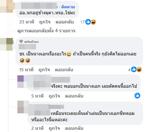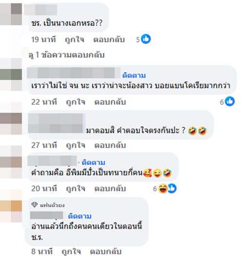 งานนี้เล่นเอาชาวเน็ตหูผึ่งเข้ามาคอมเมนต์ส่งการบ้านและคำใบ้กันรัว ๆ อาทิ บบ หรือ จน มก, คนที่ผอม ๆ มาก, จ.น หน้าเด็กหรอใครว่ะอยากรู้, จนท. ไหมนะ ดาราหน้าเด็กเพราะเพิ่งเลิกกับแฟนสักพักแล้ว, ชร น้อง นชค ใช่ปะ, เราเดาว่า น้องสาวบอยแบนด์เกาหลี เราว่าไม่น่าใช่นางเอกคลั่งผอม อันนั้นเขาพูดถึงสามีในแง่ดีตลอด สามีไม่เคยทำร้ายร่างกายนางด้วย ฯลฯ