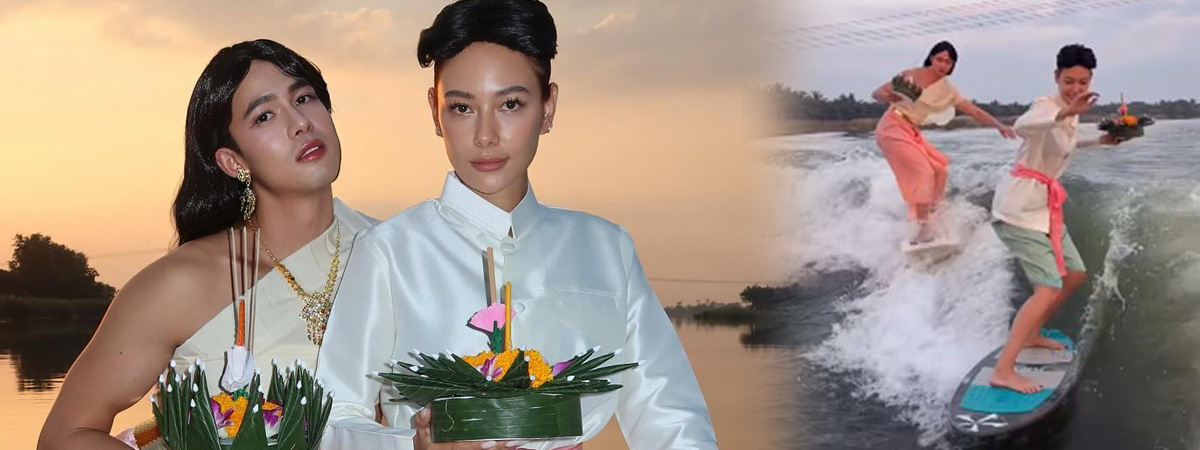 แต่พีคกว่าการโชว์สกิลเล่นเซิร์ฟสุดปัง แถมยังหวานเบา ๆ กับชอตจับมือกันไม่ปล่อยก็คือการที่ทั้งคู่สลับกันแต่งตัวชุดไทยแปลงโฉมเป็น ท่านขุนแซมมี่ กับ น้องหญิงแชมป์ เล่นเอาแฟนคลับอาลั่น พร้อมบอกว่าเป็นวาสนาของกันและกันเว่อร์