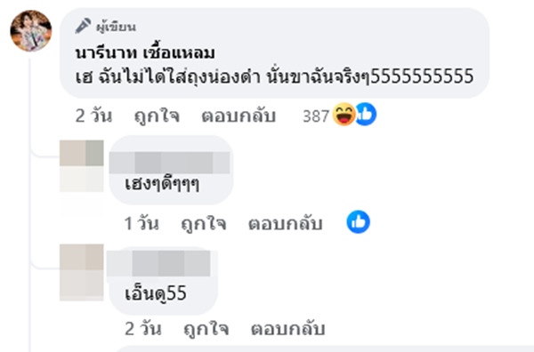 ด้าน สาวลิลลี่ จะตัดปัญหาคอมเมนต์ชี้แจงใต้โพสต์ไว้เลยว่า "เฮ ฉันไม่ได้ใส่ถุงน่องดำ นั่นขาฉันจริง ๆ 5555555555" ซึ่งก็มีแฟน ๆ เข้ามาคอมเมนต์เอ็นดูเจ้าตัวกันเป็นแถว