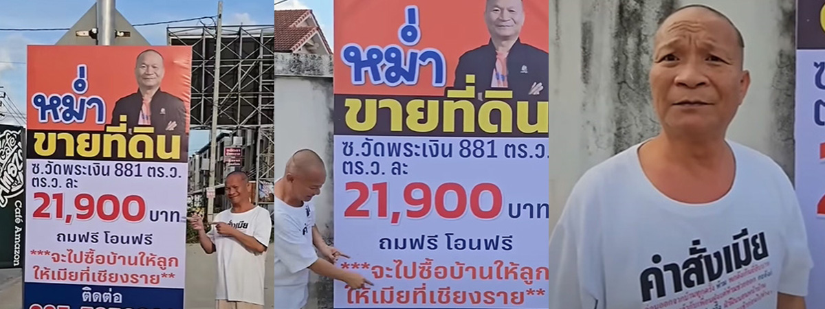 ทั้งนี้ ที่ดินดังกล่าวอยู่ในซอยวัดพระเงิน ย่านบางใหญ่ บางม่วง ทำเลติดคลอง หากใครสนใจซื้อจะถมที่ดินให้ฟรี โอนให้ฟรี ซึ่งหม่ำก็มีแซวขำ ๆ ว่า เงินที่ได้จากการขายที่ดิน จะเอาไปให้ลูกเมียที่เชียงราย ใครอยากซื้อก็ซื้อ ไม่ซื้อไม่เป็นไร ที่เชียงรายน้ำท่วม ต้องซื้อบ้านใหม่ ซื้อรถใหม่ได้แล้ว !