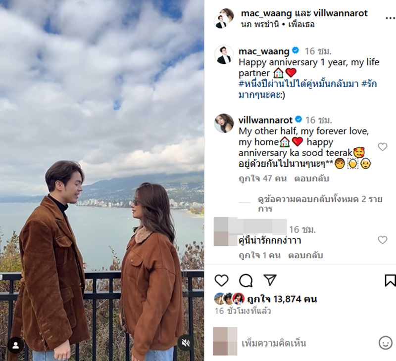 ขณะที่ สาววิว ก็ไม่น้อยหน้า เข้ามาคอมเมนต์ความหวานด้วยว่า "My other half, my forever love, my home happy anniversary ka sood teerak อยู่ด้วยกันไปนาน ๆ นะ ๆ **"