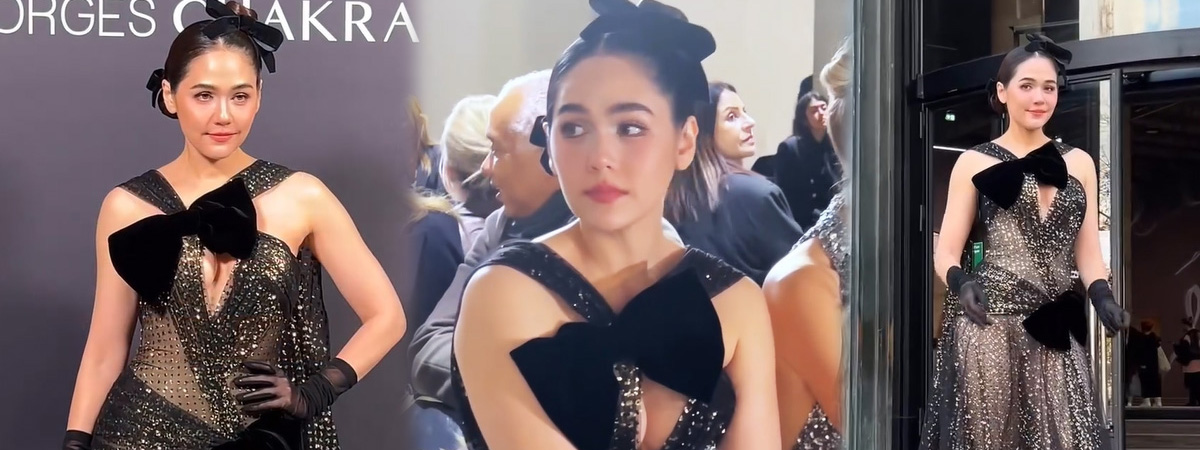 แต่ที่ทำเอาหลายคนฮือฮาก็คือลุคร่วมชมแฟชั่นโชว์ของแบรนด์ Georges Chakra ที่ชุดเดรสผ้าตาข่ายประดับเพชรสีดำพร้อมจับจีบดีเทลโบใหญ่อย่างประณีตงดงาม เผยหุ่นปั๊วะ พร้อมเว้าผ่าอกอวดอึ๋มเซ็กซี่เย้ายวนทุกอณู