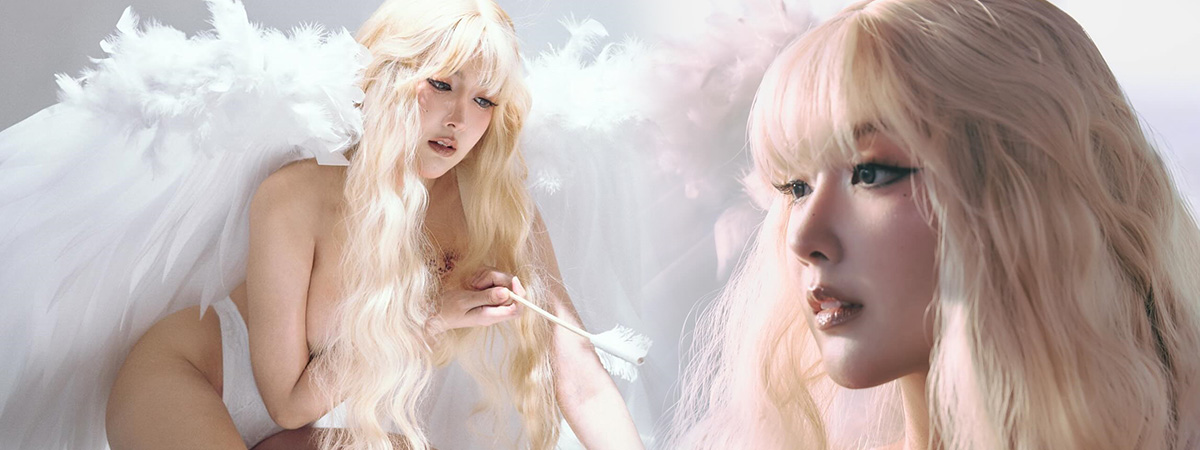 งานนี้สาว เบียร์ เดอะวอยซ์ มาในลุคสาวผมบลอนด์ ติดปีกนางฟ้าสุดอลัง เปลือยท่อนบน ส่วนท่อนล่างเป็นชั้นในสีขาวเว้าสูง ซึ่งบางชอตบางมุม ทำให้ดูเหมือนเจ้าตัวสวมใส่แค่ปีกเท่านั้น พร้อมด้วยศรรักปักอก ที่ดูเข้ากับเทศกาลวาเลนไทน์สุด ๆ