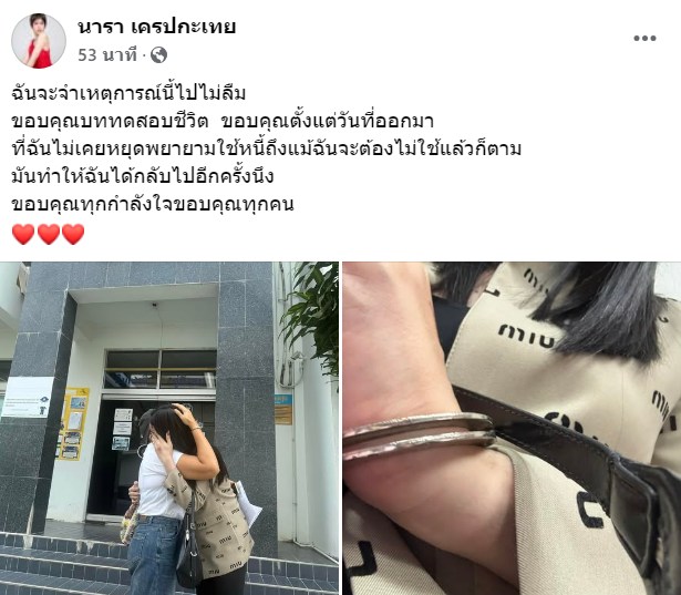ต่อมาเมื่อเวลา 18.18 น. นารา เครปกะเทย ได้รับอนุญาตให้ประกันตัวแล้ว โดยเจ้าตัวได้โพสต์เฟซบุ๊กว่า "ฉันจะจำเหตุการณ์นี้ไปไม่ลืม ขอบคุณบททดสอบชีวิต ขอบคุณตั้งแต่วันที่ออกมา ที่ฉันไม่เคยหยุดพยายามใช้หนี้ถึงแม้ฉันจะต้องไม่ใช้แล้วก็ตาม มันทำให้ฉันได้กลับไปอีกครั้งนึง ขอบคุณทุกกำลังใจขอบคุณทุกคน "