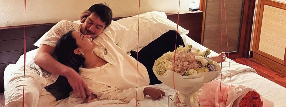 ขณะที่ในห้องพัก ก็มีการตกแต่งด้วยดอกไม้สวย ๆ ทั่วห้อง จุดเทียนสร้างบรรยากาศสุดโรแมนติก เท่านั้นยังไม่พอ บนเตียงยังมีคุณสามี อนันดา เอเวอริงแฮม นอนรอต้อนรับอยู่ด้วย จากนั้นยังได้พาไปดินเนอร์ฉลองวันครบรอบอีกต่างหาก