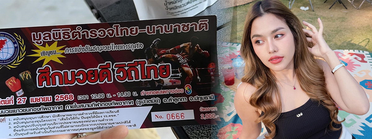 - เดินไปก็ตามคลิป ฉันก็คุยดีหัวเราะอัธยาศัยดีสุด ๆ เขาบอกว่า "มาขอให้ช่วยซื้อบัตรมวยการกุศล ที่ทางตำรวจจัดขึ้น เพื่อเอาเงินไปช่วยเด็กกำพร้า เป็นมูลนิธิ"