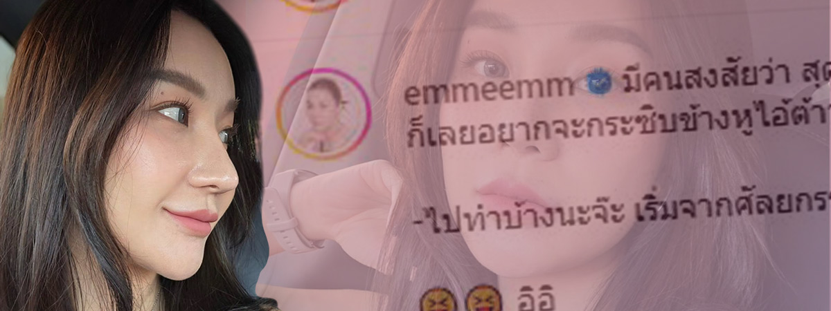 อย่างล่าสุด (28 กุมภาพันธ์ 2568) เอ็ม บุษราคัม ที่เพิ่งไปทำศัลยกรรมจมูกและเสริมหน้าผากมาใหม่ แต่กลับถูกแซะแรงไม่เลิก งานนี้เจ้าตัวเลยออกมาฟาดกลับผ่านอินสตาแกรมส่วนตัวหลังมีคนแซะว่า สุดมีดหมอ ได้แค่นี้เองเหรอ พร้อมโชว์ใบหน้าให้ซูมกันแบบชัด ๆ