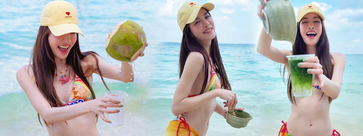 เกรซ กาญจน์เกล้า ใส่ชุดบิกินี่อวดหุ่นแซ่บ โชว์ลีลาชงชาเขียวริมทะเล แต่ทำแฟน ๆ หลุดโฟกัสพากันเมาเอวกันถ้วนหน้า