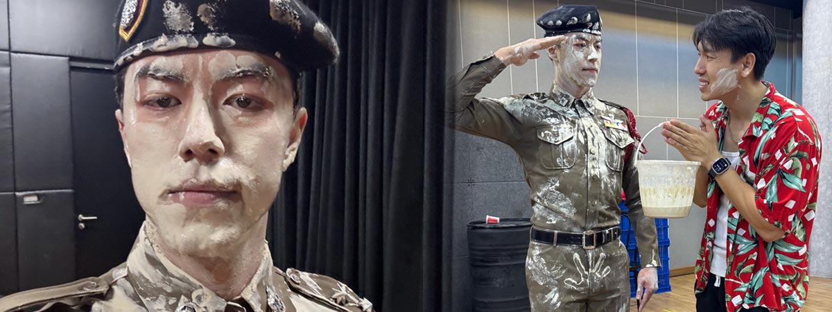 แต่งานนี้กลับทำแฟน ๆ หลุดโฟกัส เพราะกางเกงของคุณตำรวจนาย มีรอยมืออยู่เต็มกลางเป้าพอดี จนแฟน ๆ แซวว่า ไปโดนใครประแป้งมา อาทิ หล่อทะลุแป้ง ว่าแต่ เอ่อ...มือตรงเป้ากางเกง ฝีมือใครคะ, เห้ยจ่าาา มันจะไอนั่น, มือใคร555555, ขอโทษน้องนายนะคะ พี่ไม่ได้โฟกัสที่หน้าเลยค่ะ, มือใคร 5555555, ถ้าเอาไปทอดคือกรอบแล้วค่ะคุณตำรวจ 555555, ชุบแป้งฉ่ำ ๆ พร้อมทอดเลย 5555, มือใครอ่า..ตรงเป้า ..โหดมากกก, คุณตำหนวดชุบแป้งทอด, งดเล่นแป้ง แต่โดนประฉ่ำ, ทุกคนก็ดูให้ความร่วมมืออย่างดี ฯลฯ