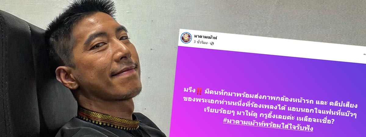โดยระบุว่า "มรึง !! มีคนทักมาพร้อมส่งภาพกล้องหน้ารถ และ คลิปเสียง ของพระเอกท่านหนึ่งที่ร้องเพลงได้ แอบนอกใจแฟนที่แบ๊ว ๆ เรียบร้อย ๆ มาให้ดู กรูอึ้งเลยค่ะ เหลือจะเชื่อ ? #มาดามเม้าท์พร้อมใส่ใจรับฟัง"