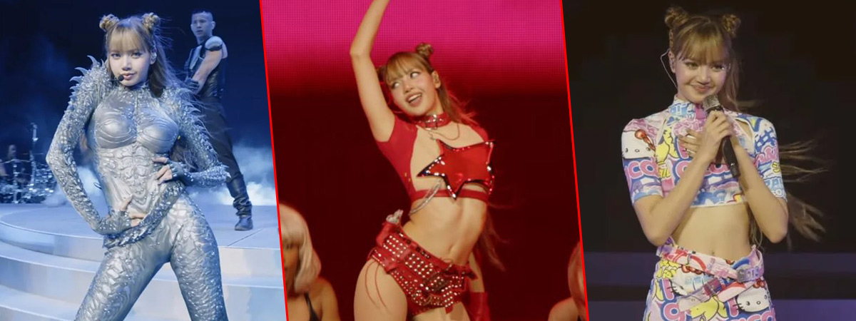 และนอกจากโชว์ปัง ๆ แล้ว เรื่องเสื้อผ้าหน้าผมของ ลิซ่า ก็จัดเต็ม สวยแซ่บจับใจแฟนคลับถึง 4 ชุด 4 สไตล์ ซึ่งแต่ละชุดก็จึ้งสมกับเป็นตัวแม่สายแฟชั่น เปิดโชว์มาได้อลังการสุด ๆ กับชุดที่แฟน ๆ บอกว่าเป็นแม่มังกรสาว ในชุดหนังรัดรูปสีเงินตกแต่งช่วงไหล่คล้ายหนามแหลมของสัตว์ และเกล็ดมังกรทั้งตัว อวดสัดส่วนสุดเป๊ะ แสดงถึงความดุเดือด พร้อมกันถูกโซ่ลามตัวเธอไว้
