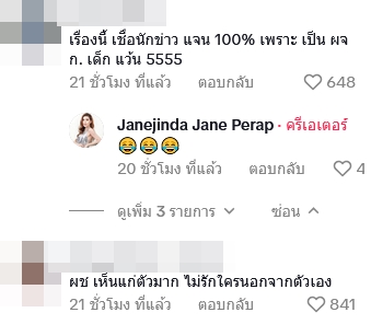 เจน จนจินดา ยังปิดท้ายว่า ที่ออกมาเล่าในตอนนี้ เพราะมองว่า ทำไมดารานักร้องชายคนนั้นถึงอยากจิ้งต่อ เพื่องาน เพื่อกระแส มันเป็นการเล่นกับความรู้สึกของผู้หญิงหรือเปล่า แล้วคิดดูวันนั้นถ้านางพญาเด็กแว้นใจอ่อนแล้วจิ้นต่อไปเรื่อย ๆ อะไรจะเกิดขึ้น ?