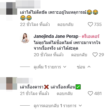 งานนี้ทำเอาชาวเน็ตคอมเมนต์กันสนั่น หลายคนก็บอกว่ารู้เลยใคร นอกจากนี้ยังเมนต์เป็นทางเดียวกันว่า เล่านิทาน ไม่ เล่าเรื่องเพื่อน ใช่ วงในมาเอง พร้อมบอกว่า เรื่องนี้ 10 ปี แก้แค้นยังไม่สาย