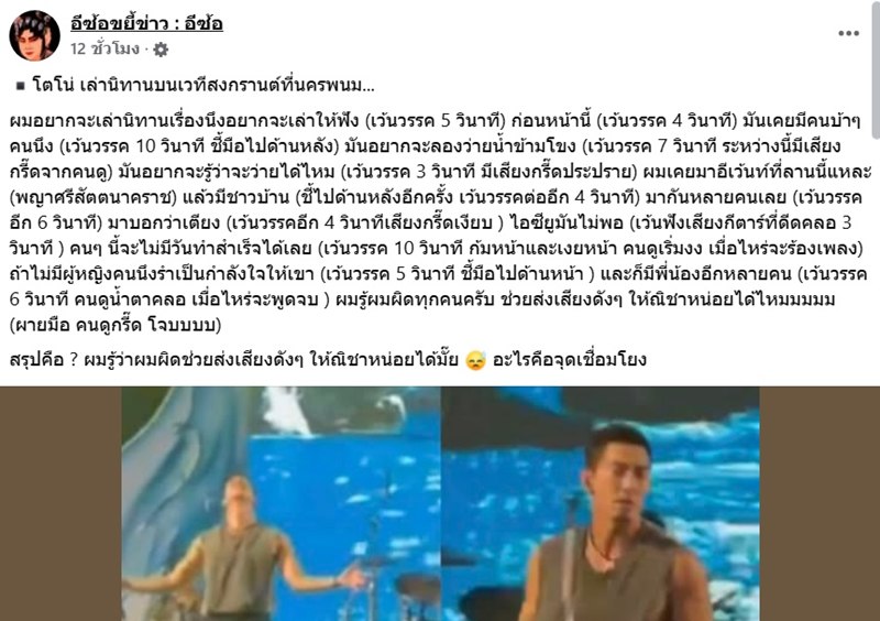 โดยล่าสุด (14 เมษายน 2568) เพจดัง อีซ้อขยี้ข่าว : อีซ้อ ได้โพสต์เกี่ยวกับเหตุการณ์ที่โตโน่พูดบนเวทีงานดังกล่าวว่า "โตโน่ เล่านิทานบนเวทีสงกรานต์ที่นครพนม...