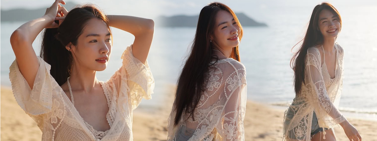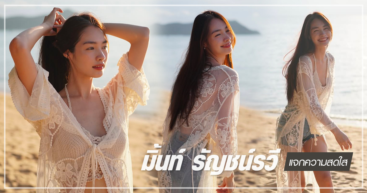 มิ้นท์ รัญชน์รวี นางเกอดาวรุ่งจากช่อง 3 แจกความดสดใสปนความเซ็กซี่เบา ๆ ที่มาในชุดเที่ยวทะเลชวนฝัน กับเสื้อคลุมสุดบางเห็นทูพีซด้านใน ระหว่าง มิ้นท์ รัญชน์รวี เดินเล่นริมชายหาด