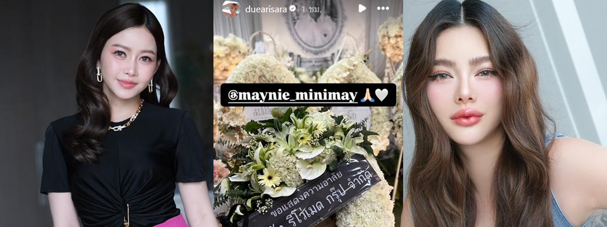 ล่าสุด (10 พฤษภาคม 2568) ยังพบว่า มาดามเมนี่ หรือ เมย์ ดร.วาสนา อินทะแสง คู่กรณีของ สาวดิว ที่ยื่นฟ้องปมยืมแบรนด์เนมหรู 60 ล้านเอาไปจำนำ ก็ได้ส่งพวงหรีดมาร่วมไว้อาลัยภายในงานสวดพระอภิธรรมด้วย ด้าน สาวดิว ก็ได้โพสต์ภาพพวงหรีดจาก มาดามเมนี่ พร้อมแคปชั่นอีโมจิหัวใจสีขาวและอีโมจิขอบคุณอีกฝ่ายด้วย