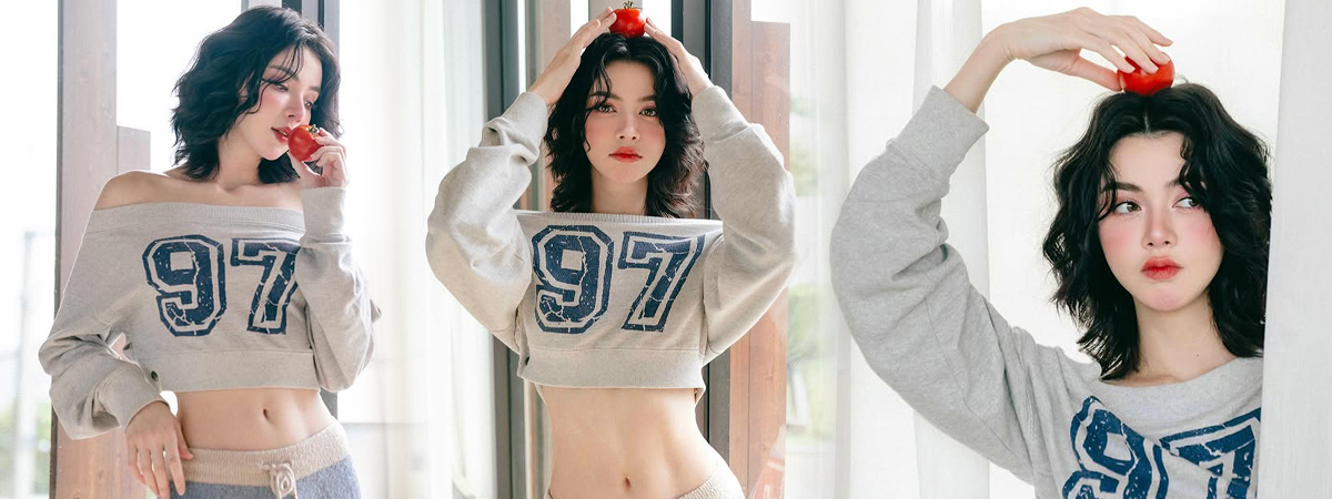 มีมี่ กัลยรัตน์ กับแฟชั่นชุดนุ่งสั้นเสื้อเอวลอย กางเกงขาสั้น โชว์ผิวและหน้าท้องขาวจั๊วะ ! ก่อน มีมี่ กัลยรัตน์ โพสท่าแชะภาพรัว ๆ ในธีมห้องน้องมะเขือเทศ แต่ละชอต... สวย เผ็ด เท่ ในคน ๆ เดียว