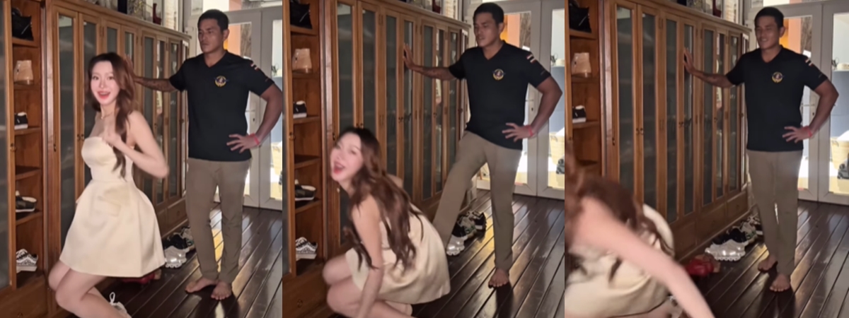 มายด์ ณภศศิ เต้นท่าทุบสะโพกแบบ ลิซ่า แต่เจอ สงกรานต์ เตชะณรงค์ ใช้เท้าถีบเบา ๆ ทำชาวเน็ตจวกยับไม่ให้เกียรติแฟน