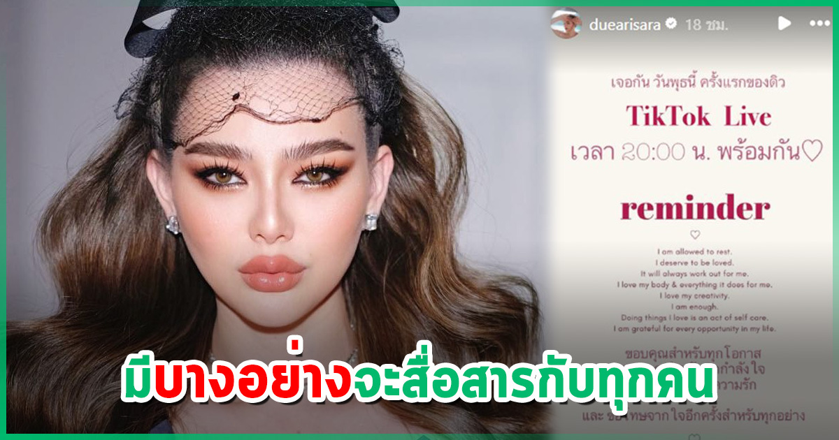 ส่วนที่ดิวโพสต์อินสตาแกรมสตอรี่ว่า พรุ่งนี้ 25 มิถุนายน 2568 จะไลฟ์ TiKToK เวลา 2 ทุ่ม ดิว เขาอาจจะชี้แจงข้อเท็จจริงทั้งหมดที่เกิดขึ้น อยากให้ดู พรุ่งนี้ดิวอาจจะมีอะไรสื่อสารกับทุกคน