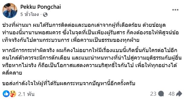 "ช่วงที่ผ่านมา ผมได้รับการติดต่อและบอกเล่าจากผู้ที่เดือดร้อน ด้วยข้อมูลทำนองนี้มานานพอสมควร ซึ่งในจุดที่เป็นเพียงผู้รับสาร ก็คงต้องรอให้พิสูจน์ข้อเท็จจริงกันไปตามกระบวนการ เพื่อความเป็นธรรมของทุกฝ่าย