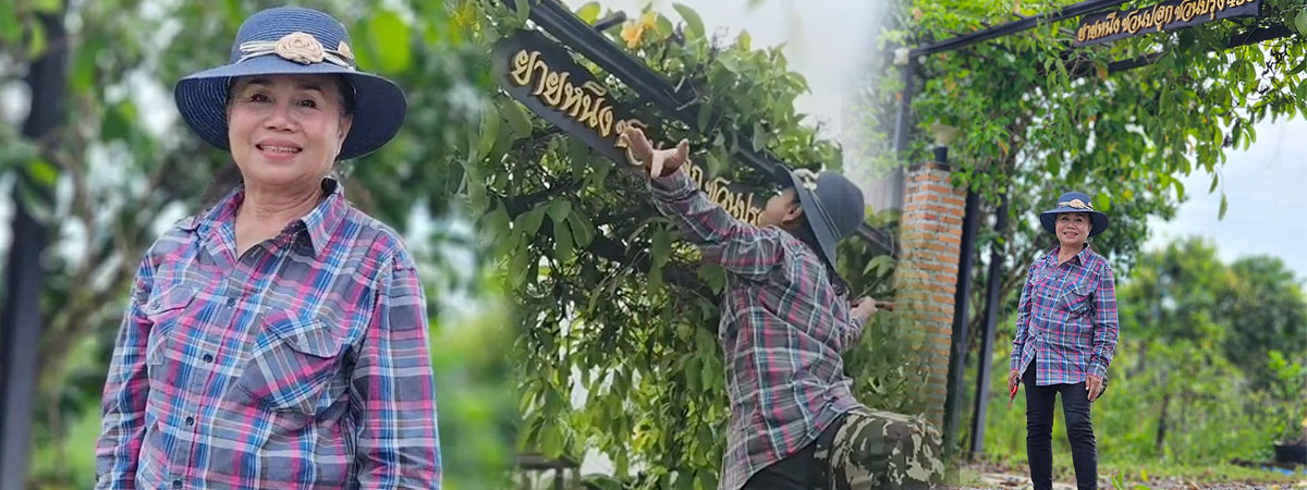 พร้อมกับระบุแคปชั่นไว้ด้วยว่า "ขึ้นป้ายหน้าสวนแล้วค่ะ #ครัวยายหนิง #ยายหนิงเกษตรอินทรีย์ #สวน #ทำสวน #สวนยายหนิง"