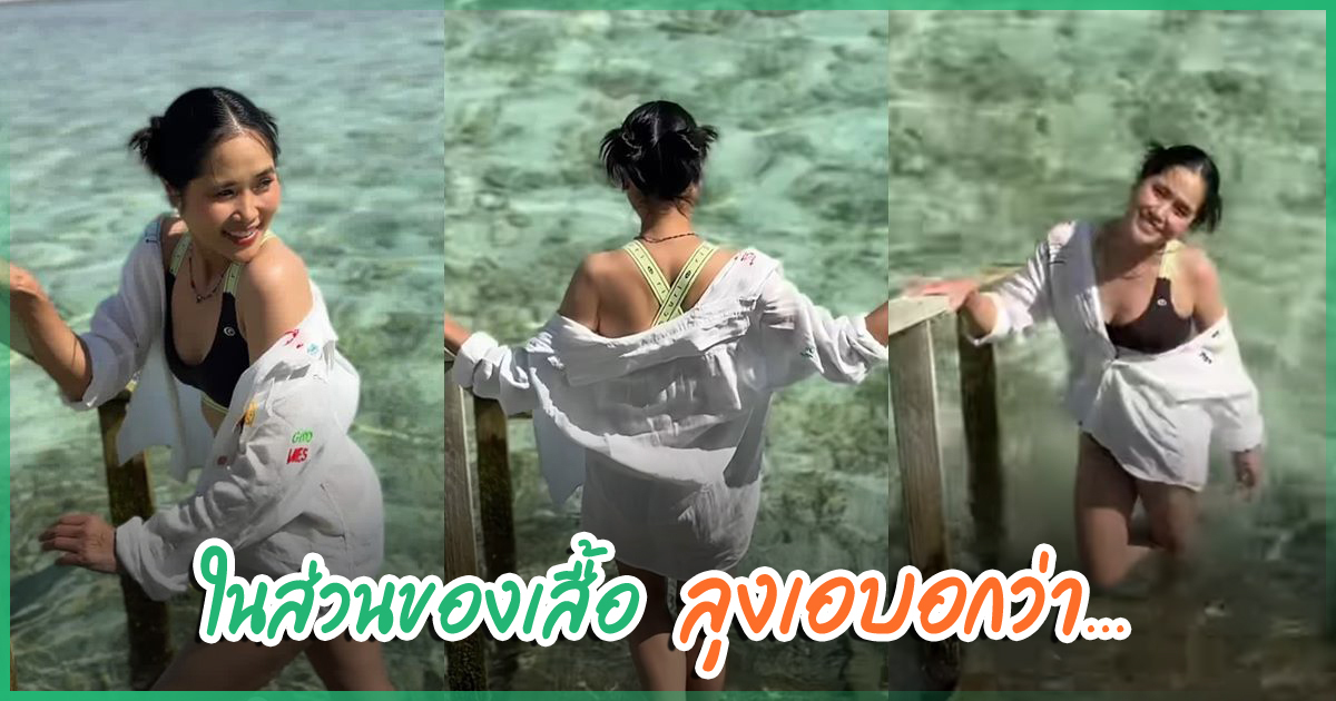 โดยไม่เพียงแค่ภาพนิ่ง แต่ยังลงคลิปมาให้ชมอีกชอต กับภาพตรงบันไดลงทะเล พร้อมใส่แคปชั่น "เมื่อวานภาพนิ่ง วันนี้ภาพเคลื่อนค่ะ ในส่วนของเสื้อนั้น... ลุงเอบอกว่า ไม่ต้องถอดออก เอาแค่พอน่ารัก...ไม่ต้องควักอะไร ออกมามากมายค่ะ"