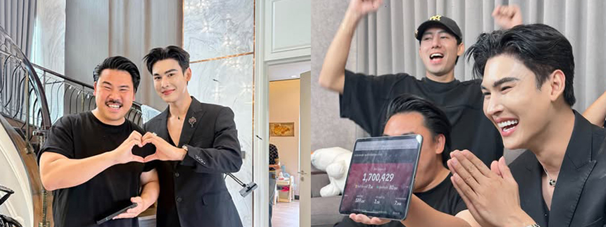 ไลฟ์แรกของ กัน จอมพลัง ได้ ดิว ธีรภัทร ที่เคยบริจาคเงินให้เจ้าตัวถึง 1 แสนบาท มาร่วมสร้างสีสัน งานนี้ทั้งคู่พูดคุยหยอกล้อกันแบบเป็นกันเอง แถมช่วยกันขายจนยอดพุ่งต่อเนื่อง ปิดแบรนด์แรกไปสวย ๆ ที่กว่า 1.7 ล้านบาท