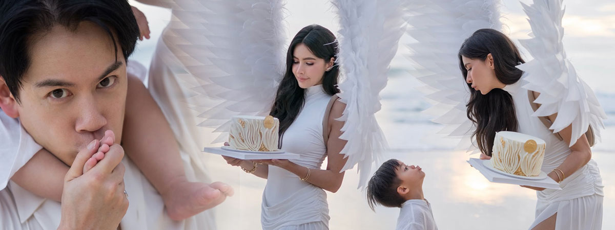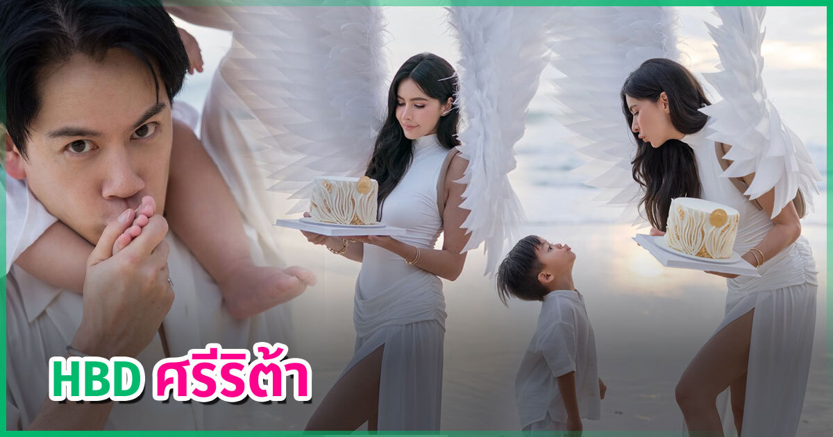 โพสต์ดังกล่าวมาพร้อมภาพของ ศรีริต้า เจนเซ่น ในชุดนางฟ้าสีขาวสะอาดตา รายล้อมด้วยสามีสุดหล่อ กรณ์ ณรงค์เดช ลูกชายสุดที่รัก น้องกวินท์ และเพื่อนสนิทที่มาร่วมฉลองวันเกิดกันแบบอบอุ่นริมทะเล บรรยากาศเต็มไปด้วยรอยยิ้มและความสุข