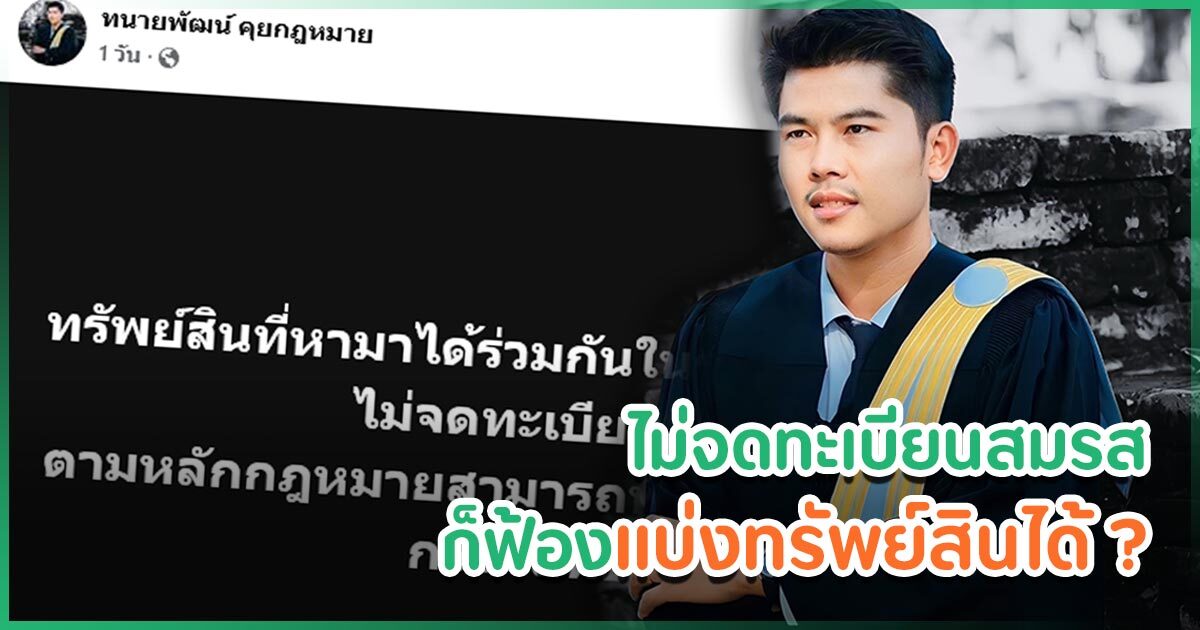 ทนายพัฒน์ ชี้ทรัพย์สินที่หามาได้ร่วมกัน สามารถฟ้องแบ่งได้ แม้ไม่ได้จดทะเบียนสมรส ตอบคนถามปม เป็กกี้ ศรีธัญญา แบ่งได้เหรอ